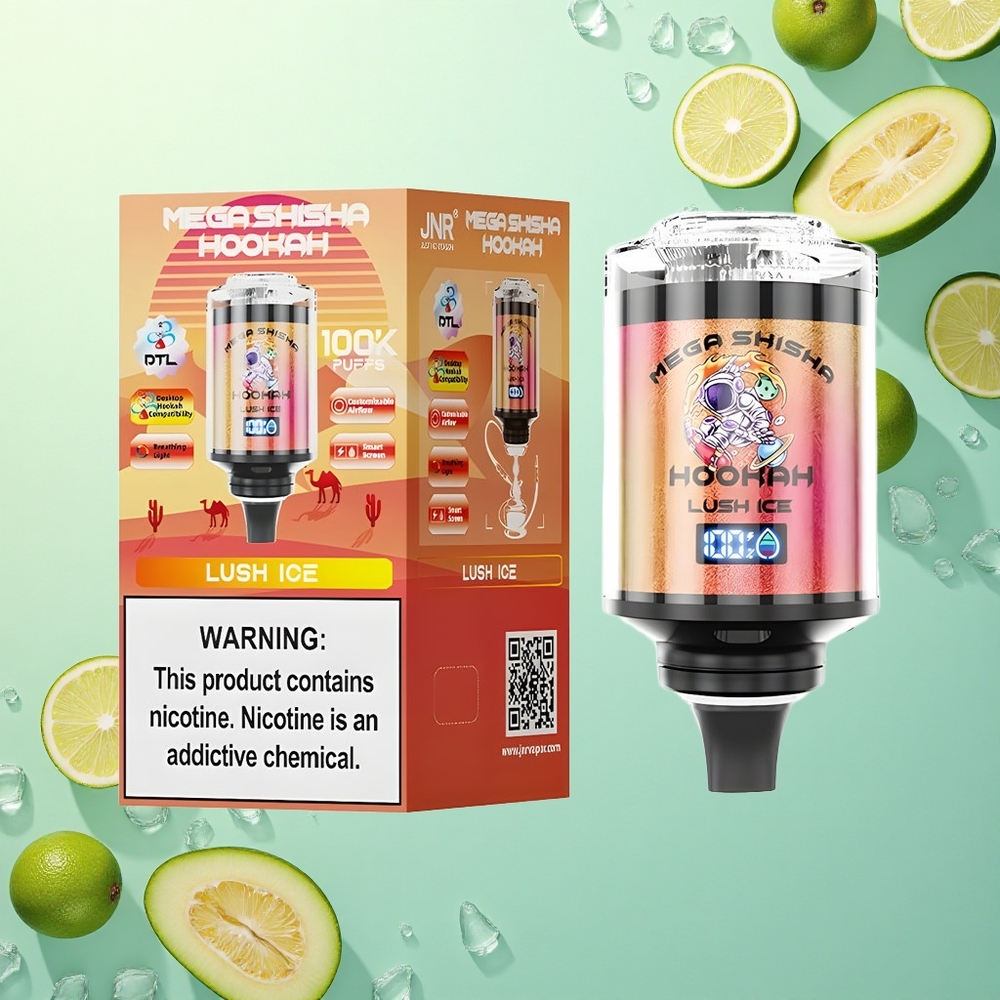 JNR Mega Shisha Hookah 100K Frisse IJs Type-C Snel Opladen 2200mAh Ademend Licht